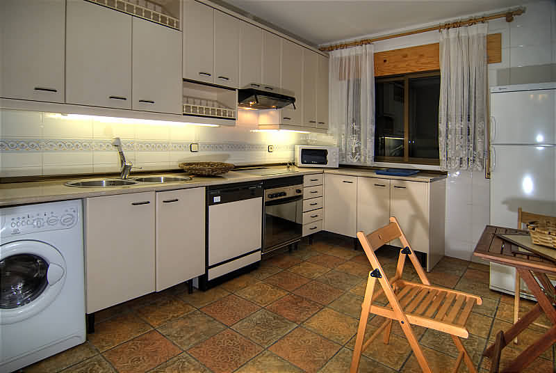 ■ 1 cocina equipada con vitrocerámica (4 fuegos), horno convencional, horno microondas, campana extractora, lava-secadora, lavaplatos y frigorífico con congelador.